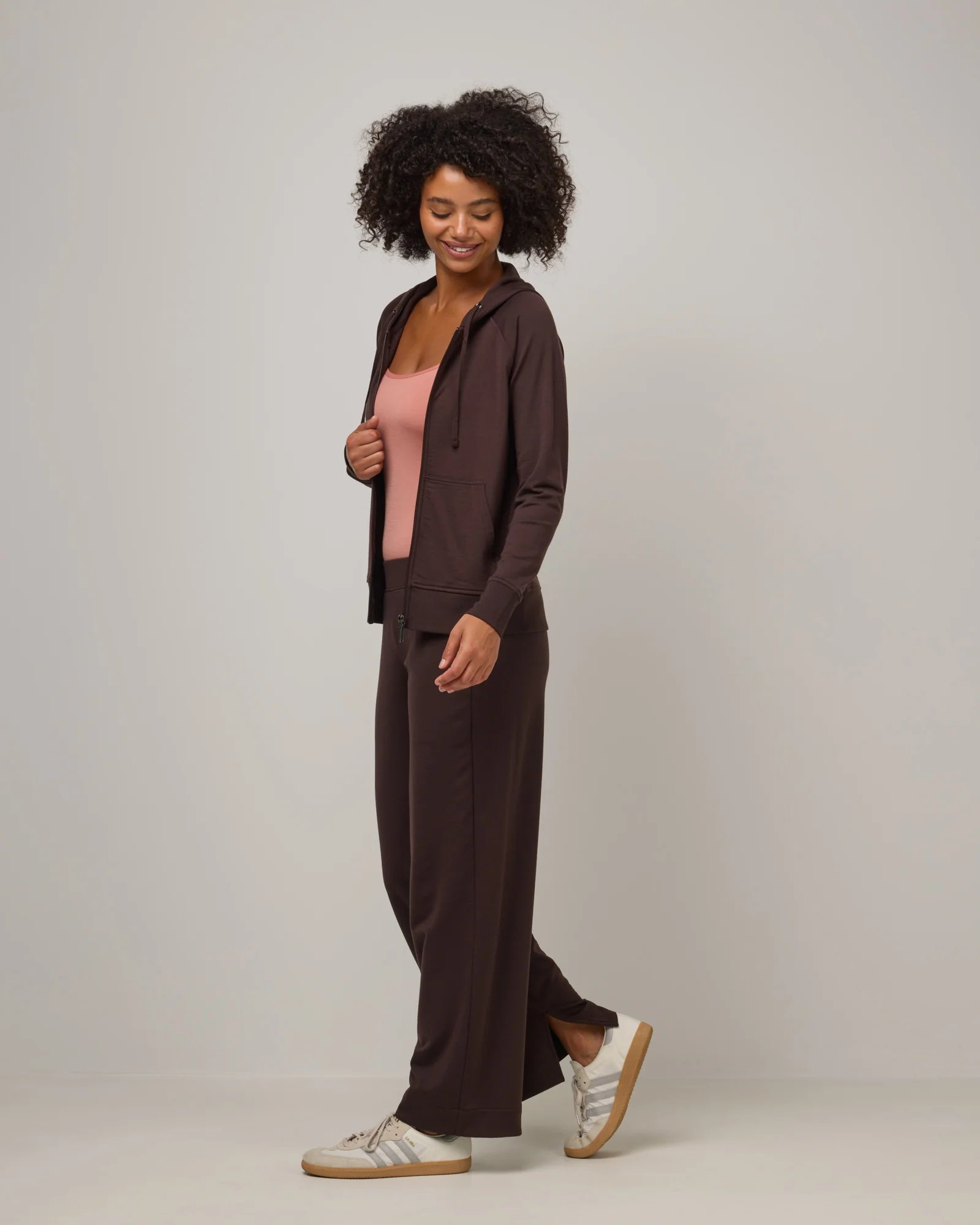 Your ideal merino full zip hoodie for layering year-round. The lofty French terry fabric structure works to evaporate moisture off your skin, keeping you both dry and comfy on your most active days. Semi-fitted, kangaroo pocket, and lined hood.