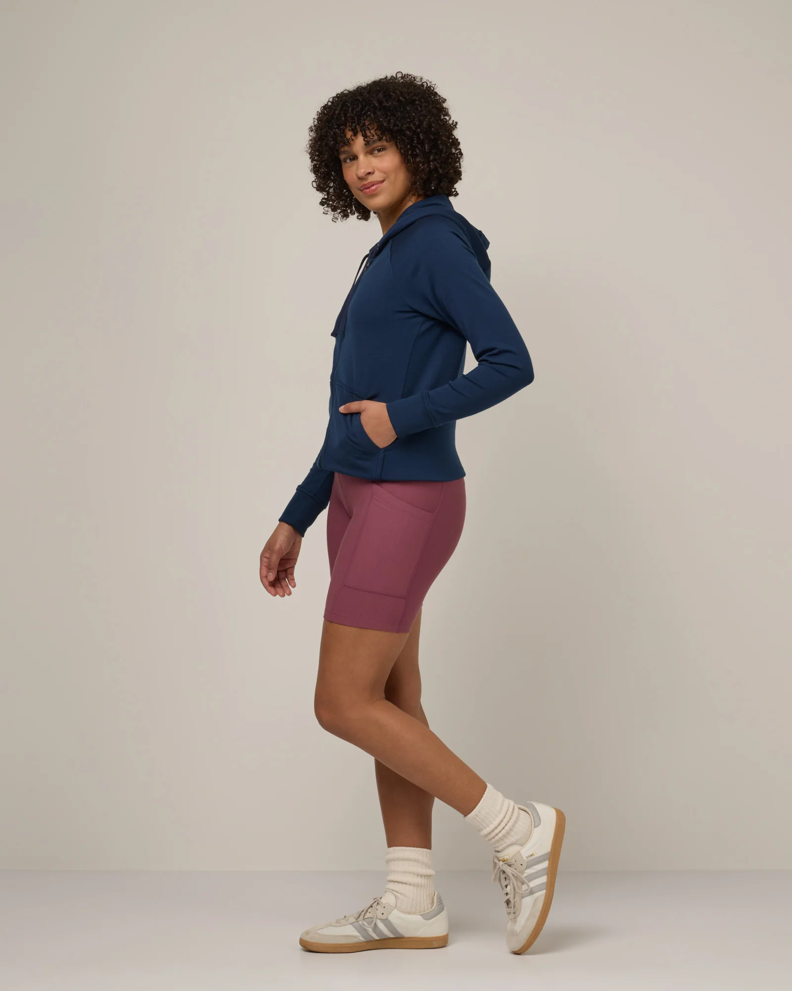 Your ideal merino full zip hoodie for layering year-round. The lofty French terry fabric structure works to evaporate moisture off your skin, keeping you both dry and comfy on your most active days. Semi-fitted, kangaroo pocket, and lined hood.